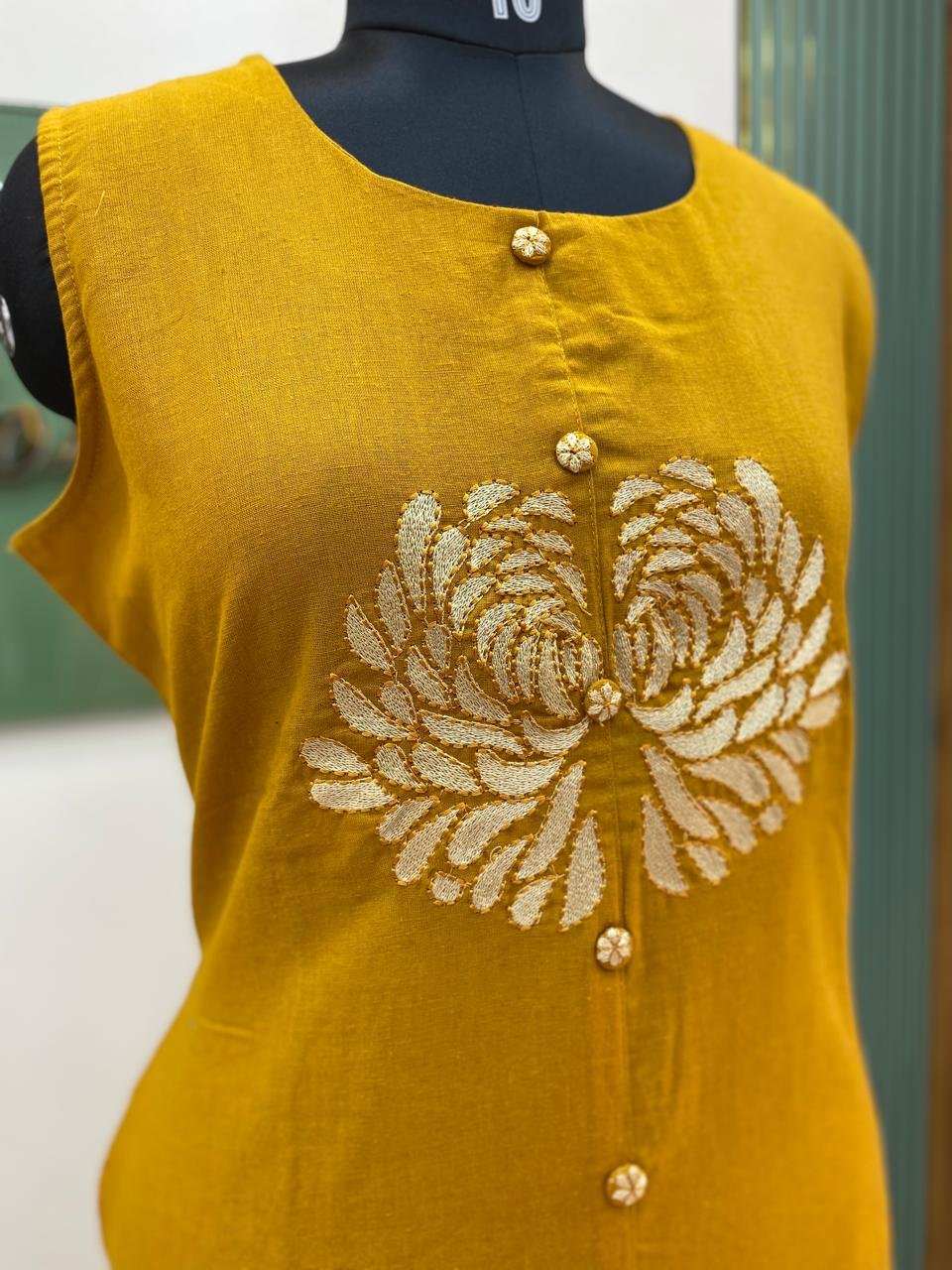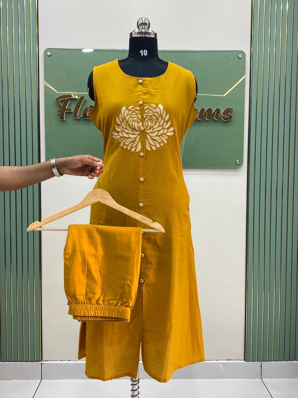 floral hand thread work at the yok portion