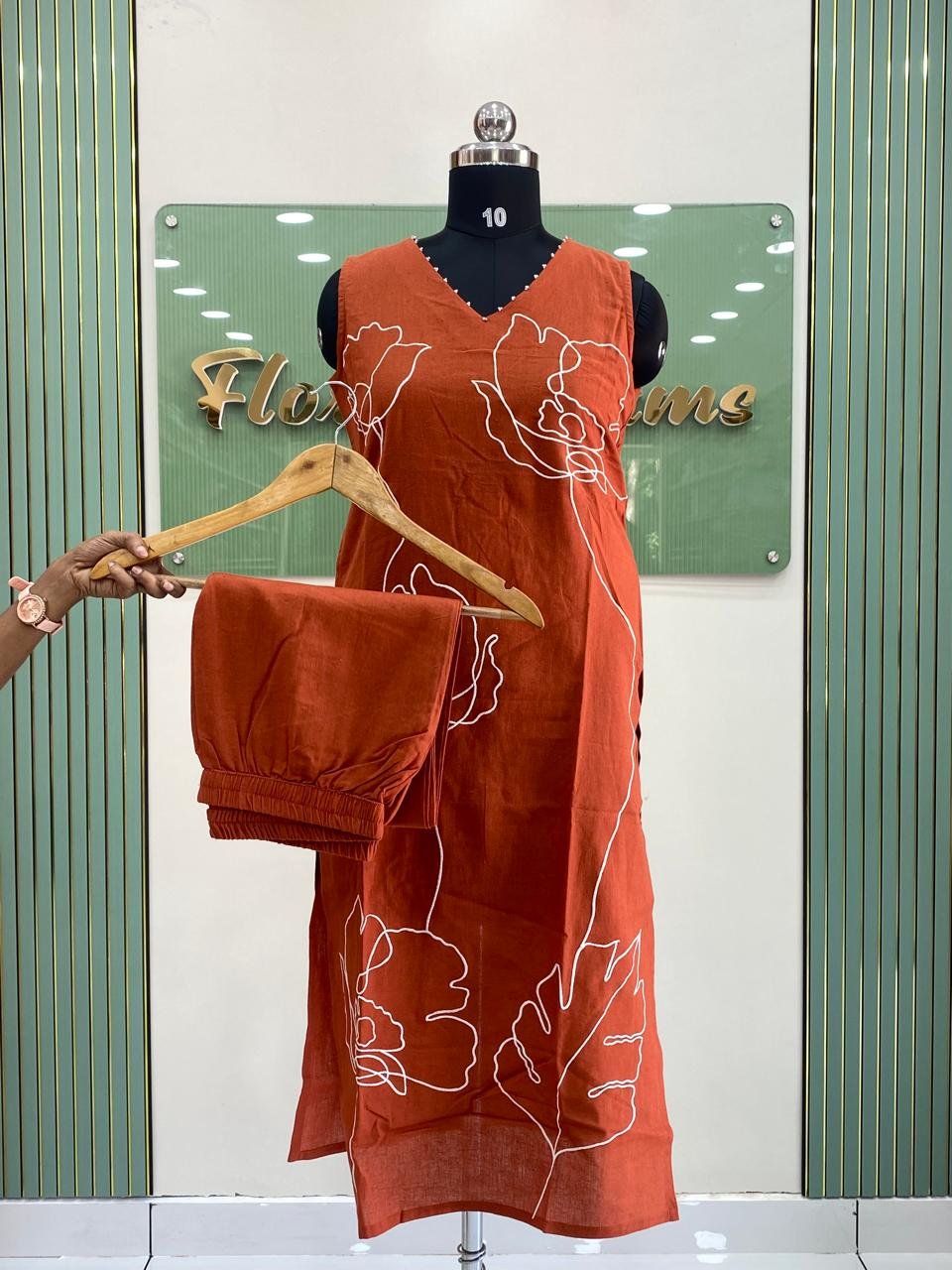 floral thread work through out the body