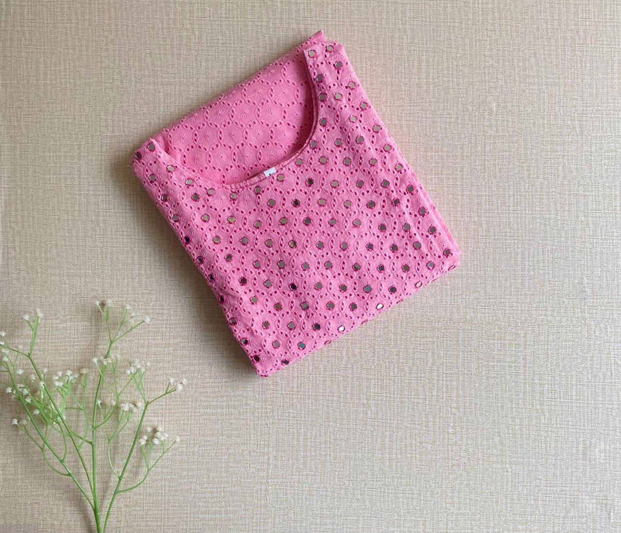 Round neck with original mirror work in yolk portion