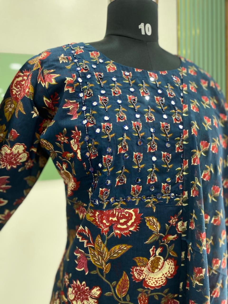 Beads and orginl mirror work in yolk portion