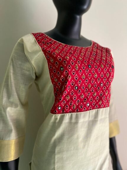 ₹1,199.00 – ₹1,299.00Price range: ₹1,199.00 through ₹1,299.00Tissue onam kurta set